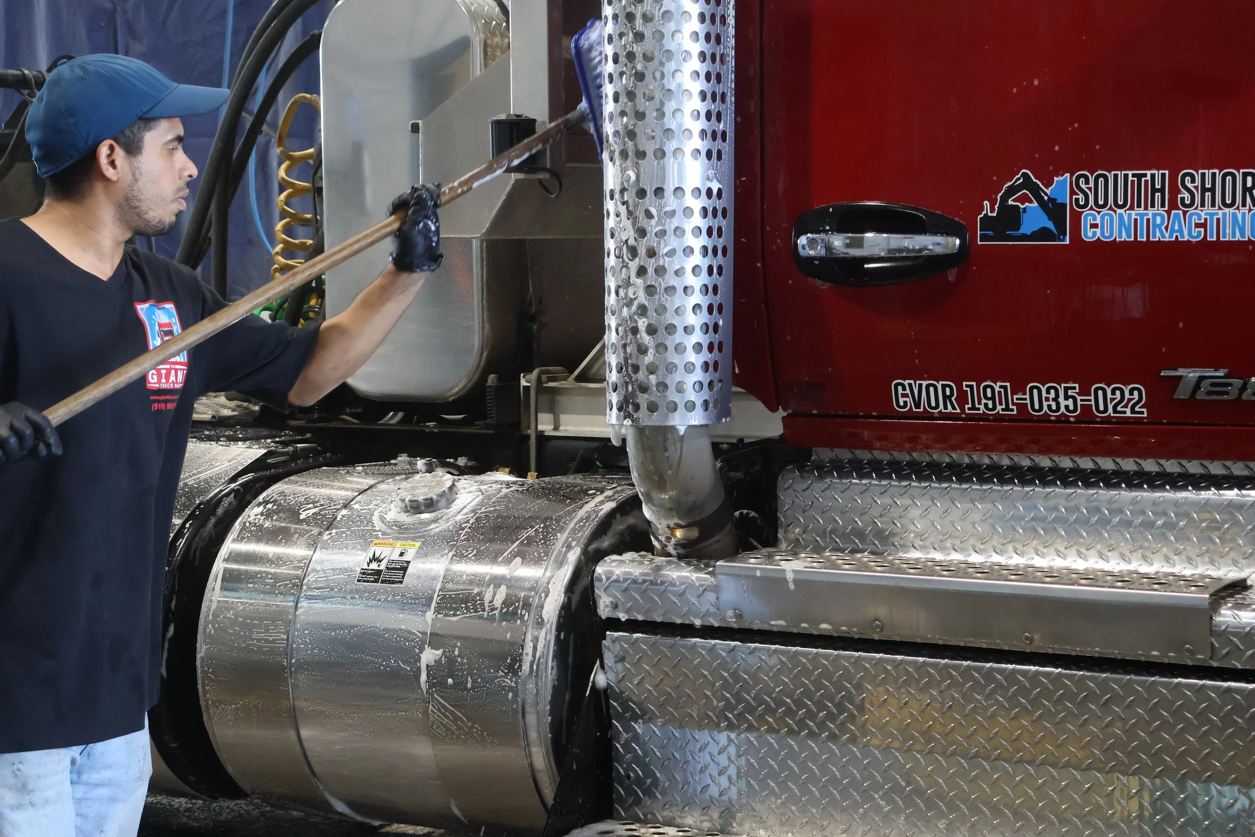 Giant Truck Wash is located at Exit 56 off Highway 401 in Tilbury, Ontario, conveniently accessible for truck drivers and fleet managers traveling the 401 corridor. We’re open 6 days a week; Monday to Friday from 9 a.m. to 8 p.m. and Saturday 9 a.m. to 4 p.m. For our handwashing services. Our ScanMax touchless automatic truck wash is open 24/7, 365.